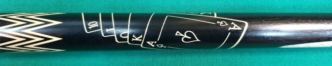 Кий «Каюков Мастер» Чёрный граб, гравировки "Кольчуга с коронками", "Флеш рояль", 2 ч