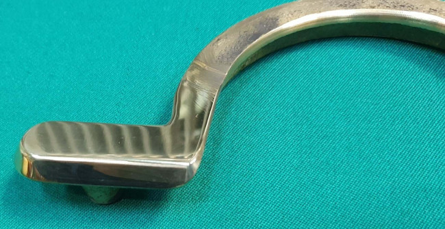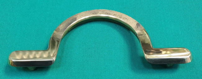 Скоба центральная для лузы изготовлен из высококачественной латуни. Лицевая часть скобы, котороая незакрыта пелериной, отполирована до зеркальной поверхности. Расстояние между монтажными втулками составляет 160 мм. Подходит для всех видов/ моделей бильярдов.