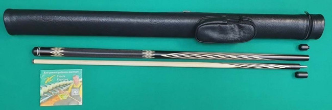 Комплектность: Логотип - значок "КС" выполненный из серебра 999 пробы, весом 1,2 гр., жёсткий тубус, номерной паспорт, защитные колпачки для скруток, гравировка "Ромбики с коронками", предусмотрена возможность прикрутить удлинитель. Чтобы прикрутить удлинитель, нужно сначала выкрутить у кия пяточку.