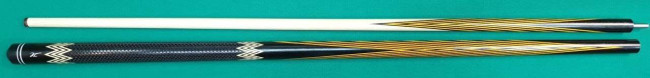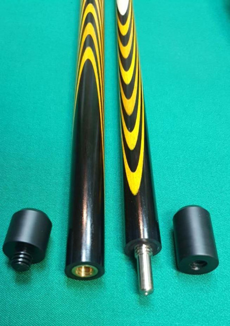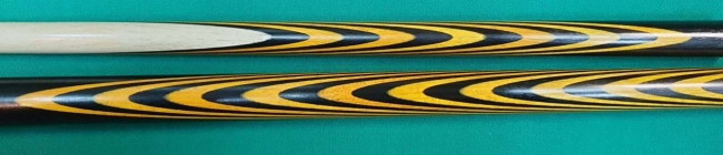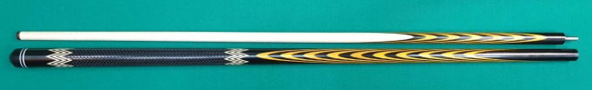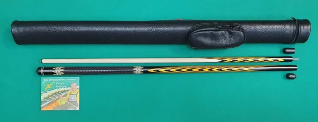 Кий "Каюков Классик плюс" Чёрный граб/ жёлтый граб, гравировка "Огоньки с коронками", 2 части