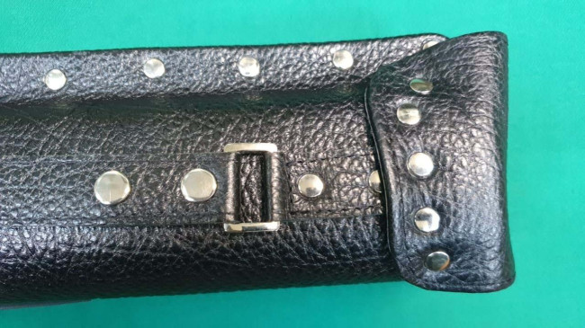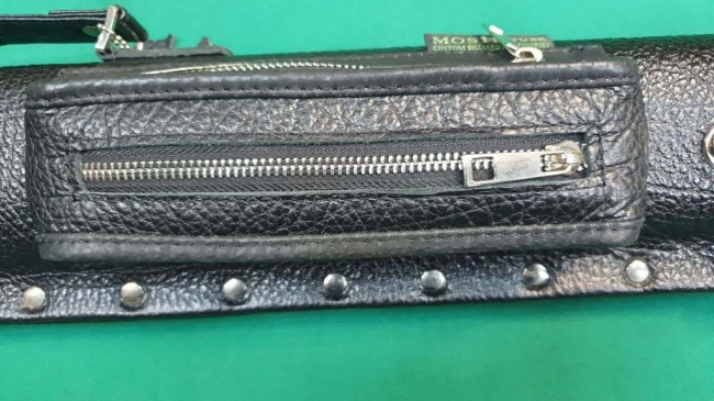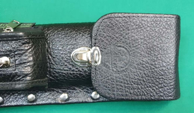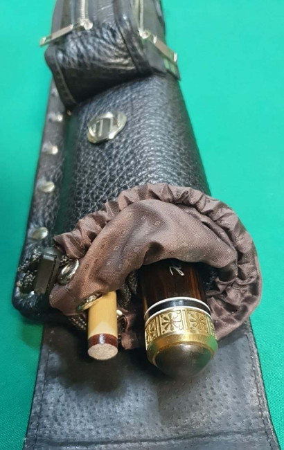 Колчан для одного 2-х составного кия для игры в пирамиду с карманами под удлинитель и аксессуары, материал - натуральная кожа.