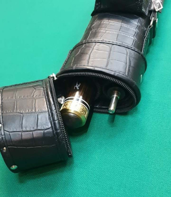 Тубус для одного 2-х составного кия для игры в пирамиду с карманами под удлинитель и аксессуары, материал - кожзам